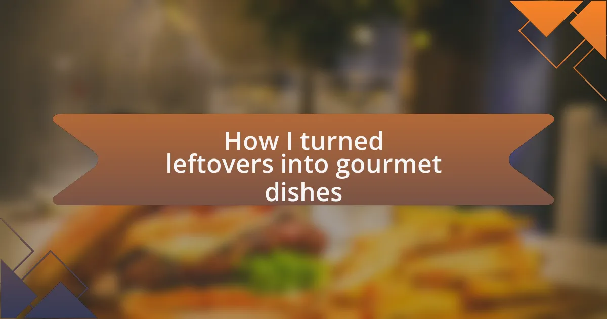 Transforming leftovers into gourmet dishes is truly a personal journey. I recall a time when I had leftover grilled chicken that felt uninspiring. Rather than settle for the usual reheating, I diced it up and combined it with a few pantry staples—quinoa, some cherry tomatoes, and a splash of balsamic vinegar. The result was a vibrant quinoa salad that not only revived the chicken but turned it into a dish that felt fresh and exciting. How liberating it is to discover that a little creativity can breathe new life into what might otherwise be viewed as mundane!
